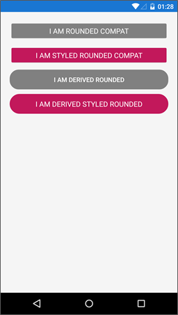 In this screen capture, the first 2 buttons are standard buttons (where border radius is not handled by AppCompat)