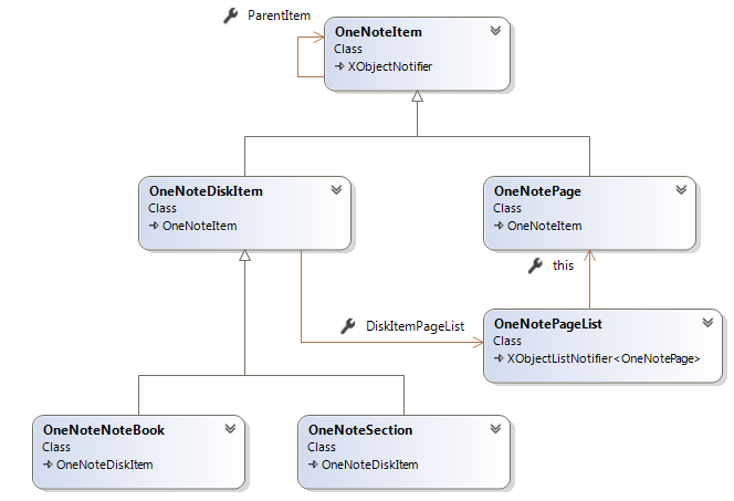A static class (OneNoteHelpers) exposes several methods to communicate with OneNote API and create / update the view model objects as required: