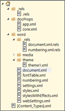 OpenXML documents themselves (MS Word, Excel, PowerPoint…) are compressed packages that include numerous xml files which describe the document's meta-models and contents.